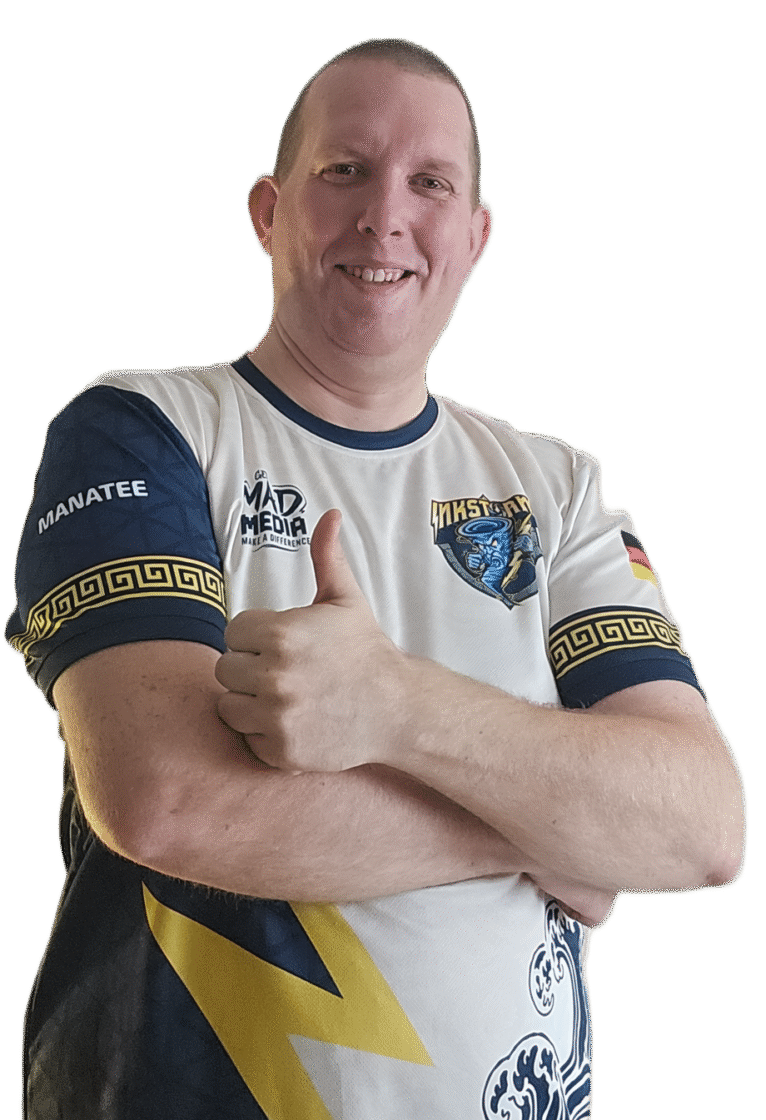 Jörg – unser InkStorm-Papa. Mit Herz, Humor und einer ordentlichen Portion „Crazy!“ ist er das Energiezentrum des Teams. Zwischen Meme-Decks und Meta breitet er nachts um 3 noch Listen aus oder fährt quer durchs Land fürs nächste Lorcana-Turnier.